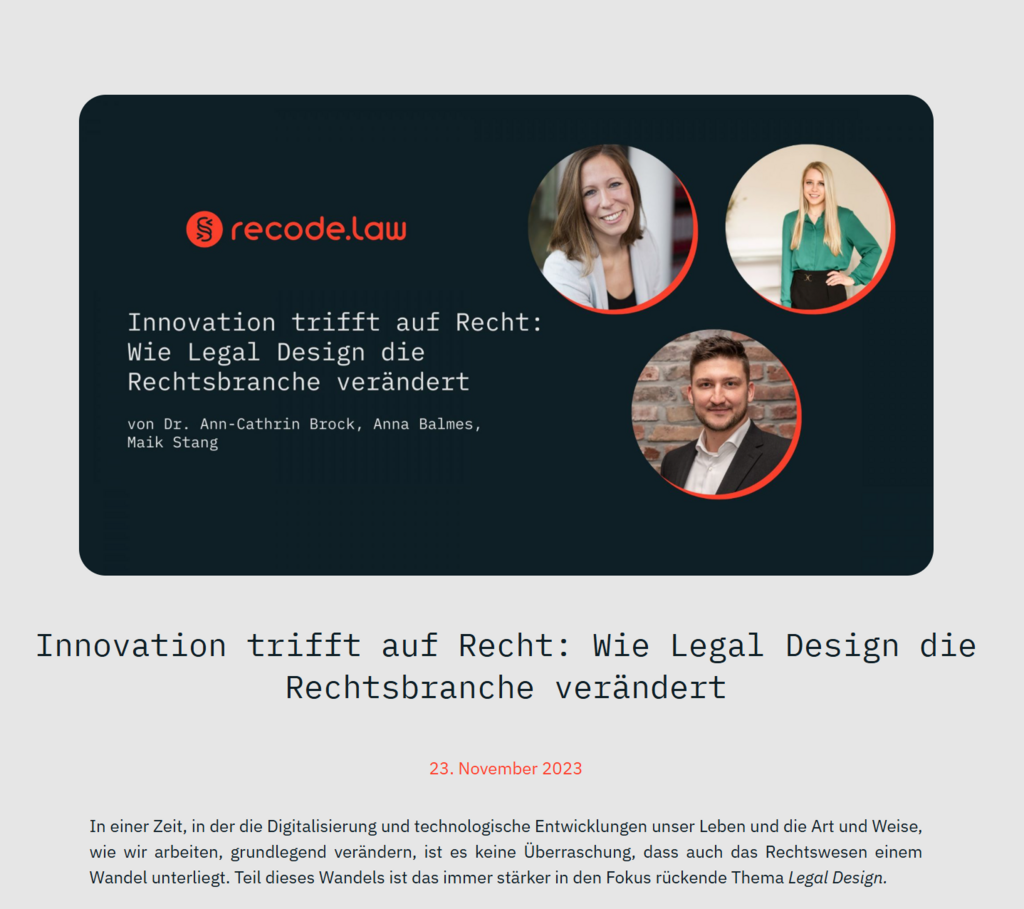 In der Folge spricht unsere Co-Founderin Ann-Cathrin zu den Weiterbildungsmöglichkeiten im Bereich Legal Design sowie dazu, wie sie es geschafft hat Legal Design im Kanzleikontext zu etablieren und wie Legal Design Projekte in Kanzleien durchgeführt werden können.